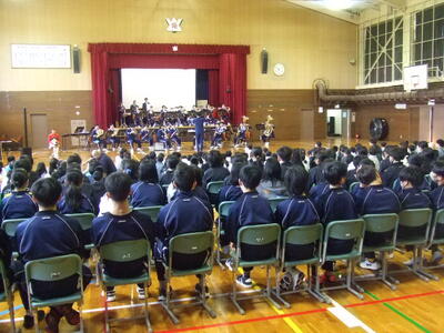 午前中に村内の小中学校のずべての児童生徒が拓中に集まり、北海道警察音楽隊の演奏を聴きました。村内の児童生徒が一同に集まる機会は久しぶりだったのではないでしょうか。演奏も迫力があり、また楽しく、素敵な時間を過ごすことができました。