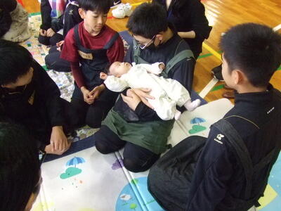 毎年、1年生で行っている「赤ちゃん抱っこ体験」の授業が終わりました。先週、事前学習を行い、今日は本当の赤ちゃんを抱っこさせていただきました。体験後は教室で「親の思いや名前にこめた願い」を聴かせていただきました。柳浦先生にも親としてのお話しをしていただきました。