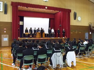 終業式に先立って、表彰を行いました。表彰には松浦教育長様が来校され、猿払村文化祭と人権作文コンテストの表彰をしていただきました。ありがとうございました。